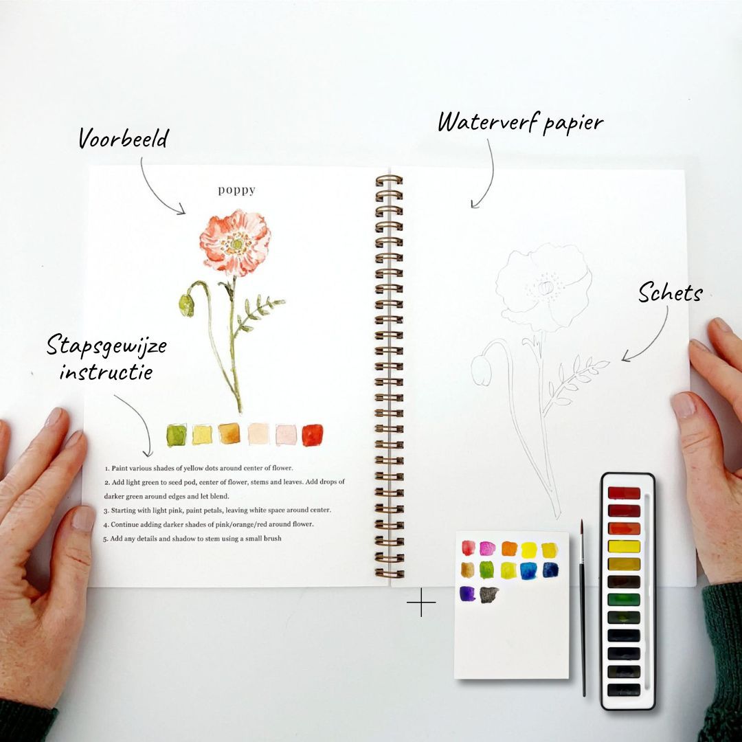 ✓ Professionele aquarelverf & penseel inbegrepen – je kunt meteen beginnen.